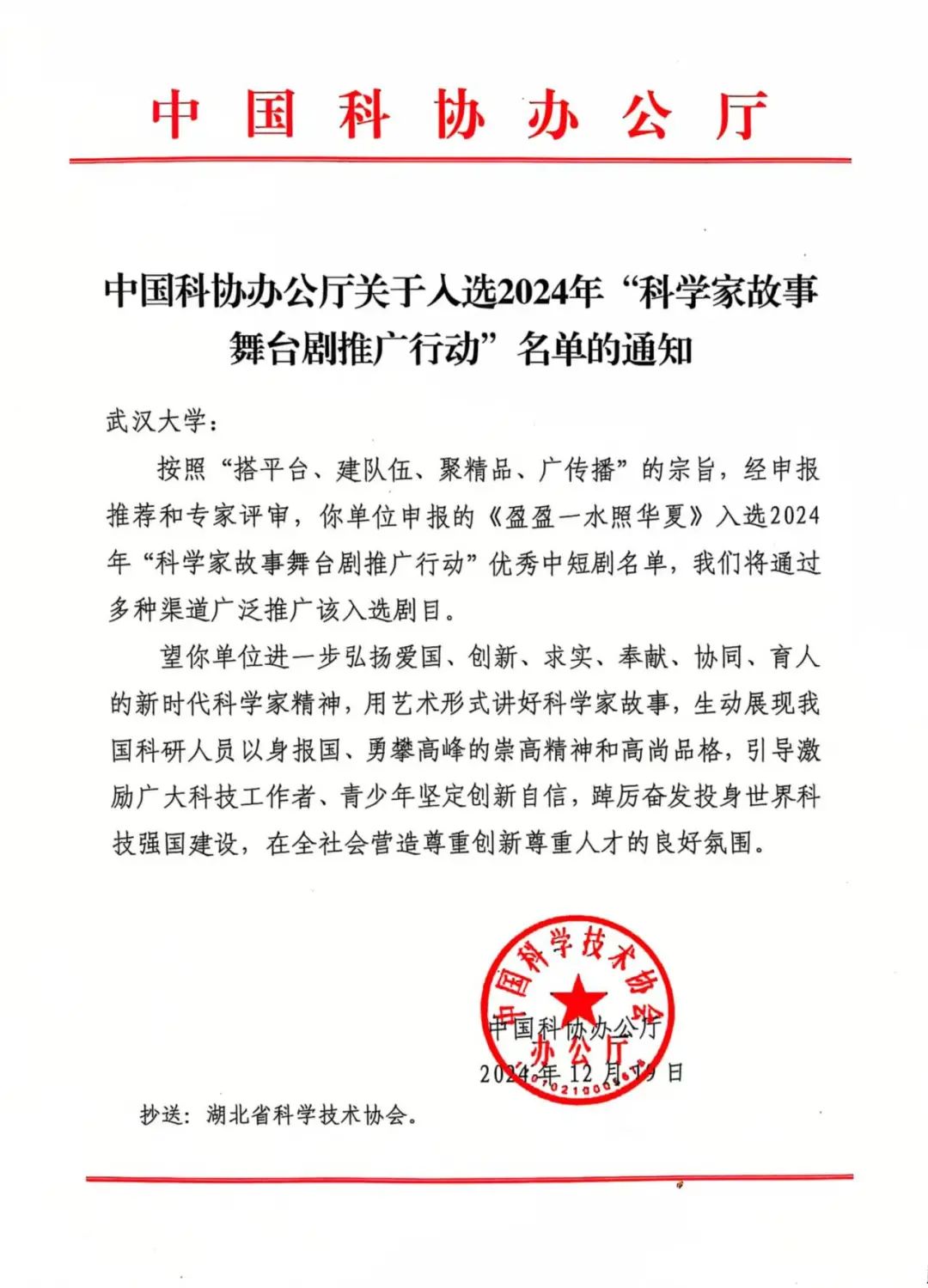近日,中国科协公布“2024年度科学家故事舞台剧推广名单”,经申报推荐和专家评审等多个环节,由艺术学院编排主演的、以水利水电学院、水资源工程与调度全国重点实验室教师科研团队为原型的舞台剧《盈盈一水照华夏》获评2024年度科学家故事优秀中短剧。