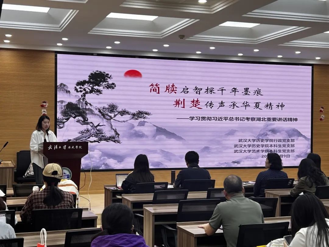 为深入学习贯彻习近平总书记考察湖北重要讲话精神,深化党建引领与学科融合,4月9日下午,雷火竞技官网进入本科生党支部,历史学院行政党支部与历史学院本科生党支部联合开展“简牍启智探千年墨痕,荆楚传声承华夏精神”主题党日活动。艺术学院党委副书记唐羽、历史学院党委副书记刘超、历史学院鲁家亮老师及两院师生党员代表共同参与,通过学术交流、文化展演与党建联学,探寻历史文脉,共话使命担当。