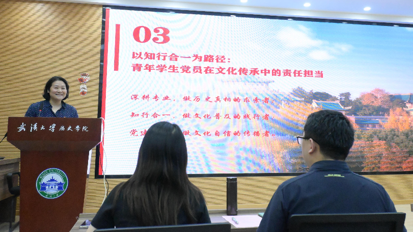 随后,历史学院硕士研究生刘丝语同学分享了自己在简帛研究中的心路历程。她以亲身经历为例,号召青年党员们以专业为基,做文化传承的“求索者”与“传播者”,用实际行动践行文化自信,秉持“寸简寸心续绝学”的精神让传统文化在新时代焕发出更加绚丽的光彩。