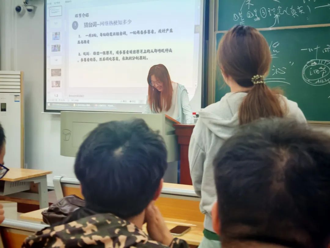 “原来我们班有这么多隐藏的‘喜剧人’!”随后的互动环节,心理委员吴佳颖化身“欢乐指挥官”,带领同学们开展趣味解压游戏——《网络热梗知多少》。从脑洞大开的即兴表演到需要默契配合的团体挑战,教室秒变笑声磁场。游戏设计暗藏巧思:通过肢体互动与团队协作,激活多巴胺分泌,让压力在嬉笑打闹中自然消融。
