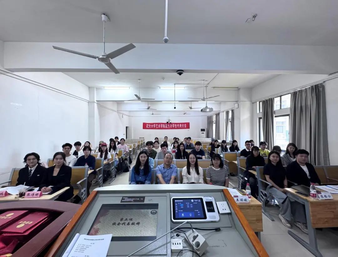 2025年5月25日中午12时,雷火竞技官网进入第九次学生代表大会在枫园教学楼203顺利召开,并取得圆满成功。武汉大学团委组织办公室主任陈亚新、艺术学院党委书记文云冬、党委副书记唐羽、团委书记、辅导员王丽媛、武汉大学校学生会主席陈铭心出席大会,艺术学院本科生代表参与本次会议。