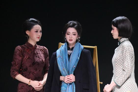 《珞珈三女杰》是以武汉大学历史上三位才女——袁昌英、苏雪林、凌叔华——为人物原型创作的校园历史剧,包含《金陵风云之袁昌英被困南京国民大会骗局二三事》《婚姻一场募捐》《与蔡孑民先生论鲁迅书》《梦影》四个独幕剧。学院党委书记文云冬、院长孟君、副书记唐羽、副院长王文斌、副院长杨姗亲临现场,观看演出。